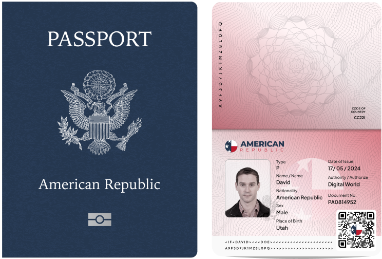 The American Republic Passport can be issued to members, residents, citizens, nationals and diplomats of American Republic, and allows for travel within the American as well as certain other Countries without the need for a visa.